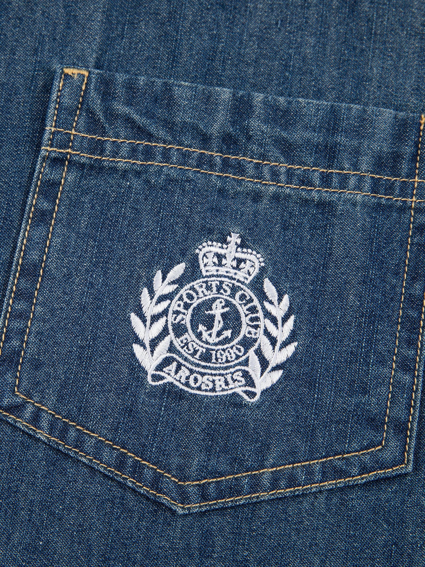 Nautical anchor and crown crest embroidery on chest pocket